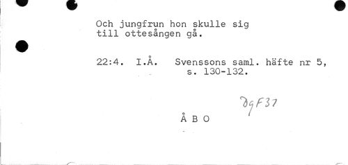 //// Och jungfrun hon skulle sig till ottesången gå. //// 22:4. I.Å. Svenssons saml. häfte nr 5, //// s. 130-132. //// r //// ÅBO ////