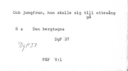 //// Och jungfrun, hon skulle sig till ottesång //// gå //// i //// i i //// å //// 8 a Den bergtagna //// DgF 37 //// %f37 //// •fti | //// 'i: ' \ //// FSF V:1 ////