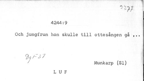 //// 4244:9 //// Och jungfrun hon skulle till ottesången gå //// % /-'S 7 //// Munkarp (SI) //// L U F ////