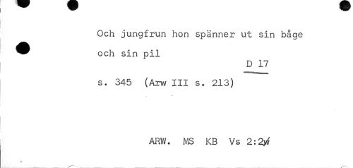 //// Och jungfrun hon spänner ut sin båge ^^ och sin pil //// D 17 //// s. 345 (Arw III s. 213) //// ARW. MS KB Vs 2:2tff //// * ////