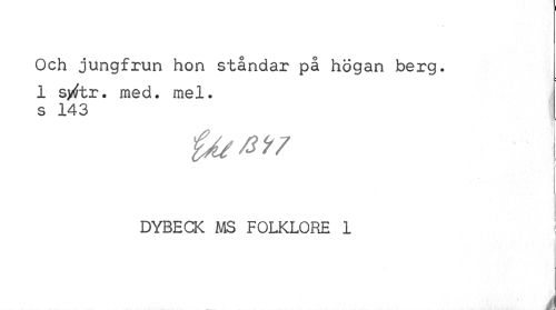 //// Och jungfrun hon ståndar på högan berg. //// 1 syftr. med. mel. s 143 //// : //// DYBECK MS FOLKLORE 1 //// 1 ////