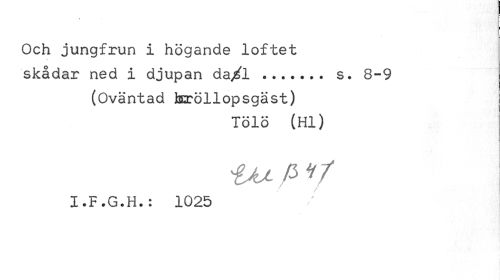 //// Och jungfrun i högande löftet //// skådar ned i djupan da/1 ... s. 8-9 //// (Oväntad bröllopsgäst) //// Tölö (Hl) ^ ?> */ 1 //// I.F.G.H.: 1025 ////