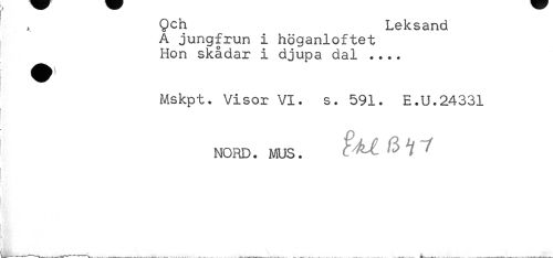 //// Qch Leksand //// A jungfrun i höganloftet Hon skådar i djupa dal ... //// Mskpt. Visor VI. s. 591. E.U.24331 //// NORD. MUS. ' ////