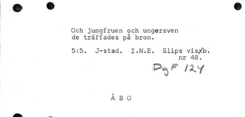 //// iMI //// Och jungfruen och ungersven de träffades på bron. //// 5:5. J-stad. I.N.E. Slips vis/b. //// nr 48. //// ÅBO ////