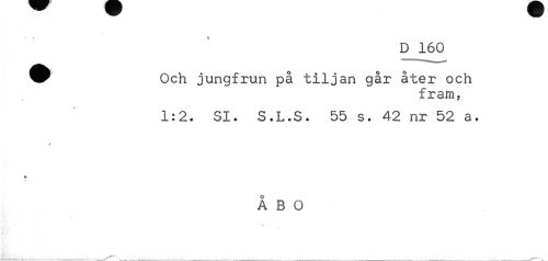 //// D 160 //// W Och jungfrun på tiljan går åter och //// fram, //// 1:2. SI. S.L.S. 55 s. 42 nr 52 a. //// i //// . * //// ÅBO ////