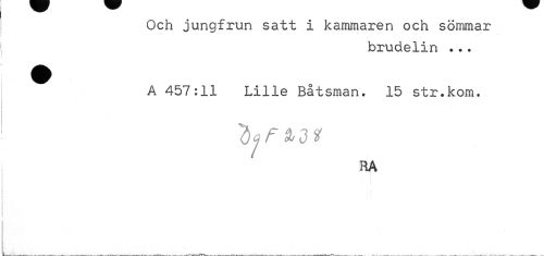 //// Och jungfrun satt i kammaren och sömmar //// brudelin ... //// A 457:11 Lille Båtsman. 15 str.kom. //// ra ////