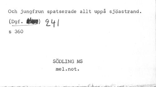 //// Och jungfrun spatserade allt uppå sjöastrand, //// (Dgf. iW) //// s 360 //// SÖDLING MS mel.not. ////
