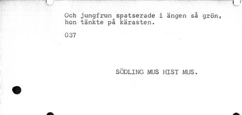 //// Och jungfrun spatserade i ängen så grön, hon tänkte på kärasten. //// 037 //// SÖDLING MUS HIST MUS. ////