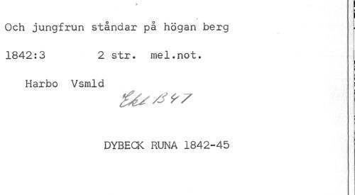 //// ? //// Och jungfrun ståndar på högan berg 1842:3 2 str. mel.not. //// ! //// Harbo Vsmld //// DYBECK RUNA 1842-45 ////