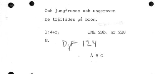 //// Och jungfrunen och ungersven De träffades på bron. //// 1:4+r. INE 28b. nr 228 //// N- Vf- IV* //// ÅBO //// i ////