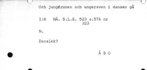 //// Och jungfrunen och ungersven i dansen gå //// 1:8 NÄ. S.L.S. 523 s.576 nr //// 323 //// N. //// Danslek? //// ^ ÅBO ////