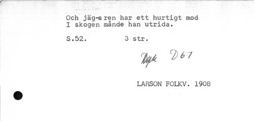 //// Och jäg-a ren har ett hurtigt mod I skogen månde han utrida» //// 3 # # 3 str * //// ty* //// LARSON FOLKV. 1908 ////
