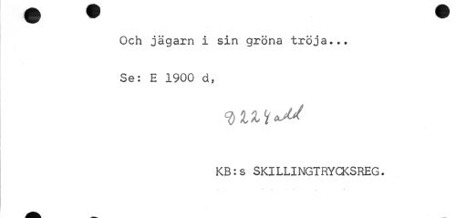 //// Och jägarn i sin gröna tröja... Se: E 1900 d, //// ^ix^icM //// KB:s SKILLINGTRYCKSREG. ////