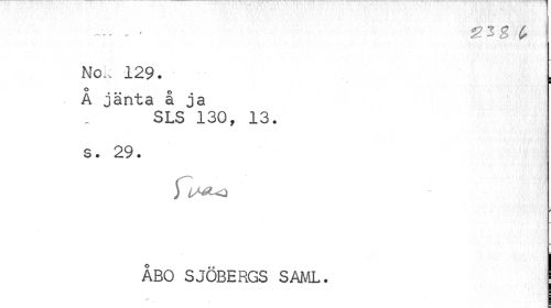 //// V T # : I //// No., 129. //// i //// Å jänta å ja //// SLS 130, 13. //// 3 • • J //// j //// ÅBO SJÖBERGS SAML. ////