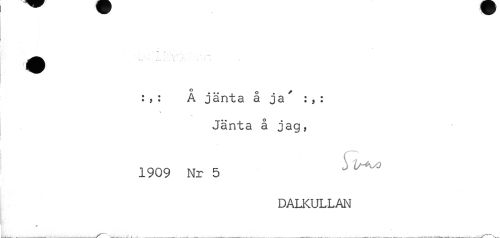 //// 't //// : , : Å jänta å ja' : , : //// Jänta å jag, //// (7 //// 1909 Nr 5 //// DALKULLAN ////