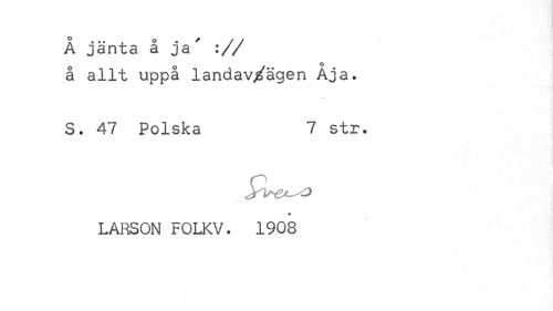 //// Å jänta å ja' :// å allt uppå landav/ägen Åja. //// S. 47 Polska 7 str. //// LARSON FOLKV. 1908 ////