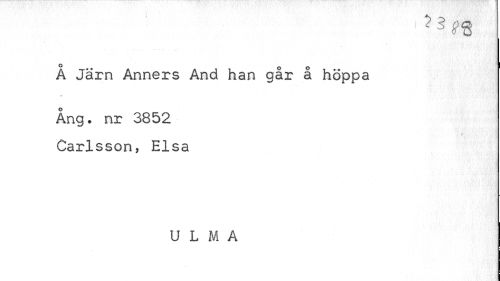 //// i 2 3 //// A Järn Anners And han går å hoppa Ång. nr 3852 //// ? //// Carlsson, Elsa //// U L M A ////