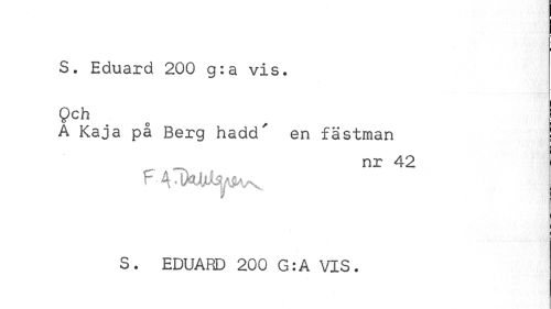 //// I //// S. Eduard 200 g:a vis. Qch //// A Kaja på Berg hadd' en fästman //// nr 42 //// S. EDUARD 200 G:A VIS. ////