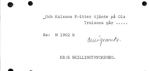 //// _Och Kalsons P/itter tjänte på Ola //// Trulsons går ... //// Se: N 1902 b //// &VJJ- QféYvJV < //// KB:S SKILLINGTRYCKSREG. ////