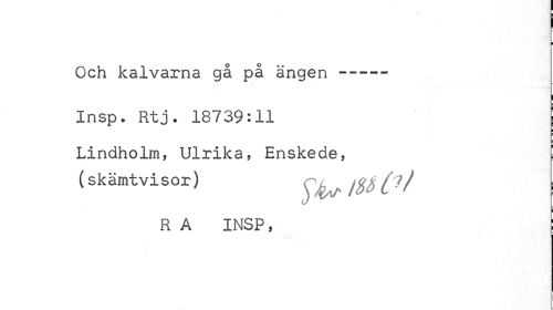 //// I //// Och kalvarna gå på ängen --- //// i I //// Insp. Rtj. 18739:11 | //// Lindholm, Ulrika, Enskede, //// (skämtvisor) jUCn> I //// R A INSP, ; ////
