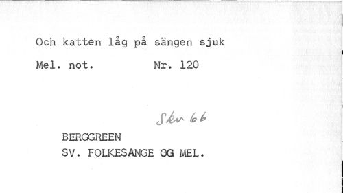 //// Och katten låg på sängen sjuk Mel. not. Nr. 120 //// BERGGREEN //// SV. FOLKESANGE OG MEL. ////