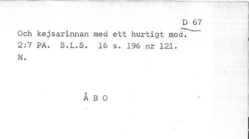 //// D 67 //// Och kejsarinnan med ett hurtigt mod. "" 2:7 PA. S.L.S. 16 s. 196 nr 121. N. //// ÅBO //// » ////