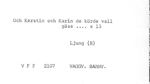 //// i * //// i //// Och Kerstin och Karin de körde vall //// gäss ... s 13 //// Ljung (B) j //// ! i //// V F F 2107 VAGGV. BÄRNV. //// ¦ ////