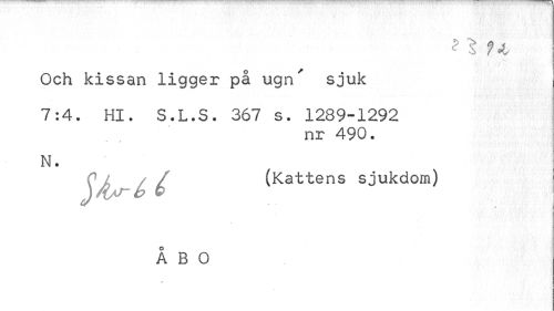 //// Och kissan ligger på ugn' sjuk //// 7:4. Hl. S.L.S. 367 s. 1289-1292 //// nr 490. //// • •• j». //// N. //// (Kattens sjukdom) //// ÅBO //// an ////