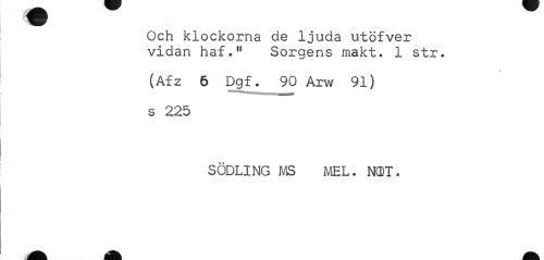 //// (fl ¦ //// Och klockorna de ljuda utöfver vidan haf." Sorgens makt. 1 str. //// (Afz 6 Dgf. 90 Arw 91) //// s 225 //// SÖDLING MS MEL. NffiT. ////