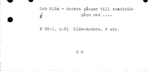 //// Och Kläm - Anders gångar till stadträd» //// garn ned ... //// B 55:1, s.8'1 Kläm-Anders, 4 str. //// R A ////