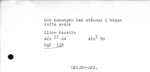 //// v 1 //// Och konungen han ståndar i högan lofts svale //// Liten Kerstin //// Afz 11 44 Afz1 50 //// DgF 128 //// GEIJER-AFZ. ////