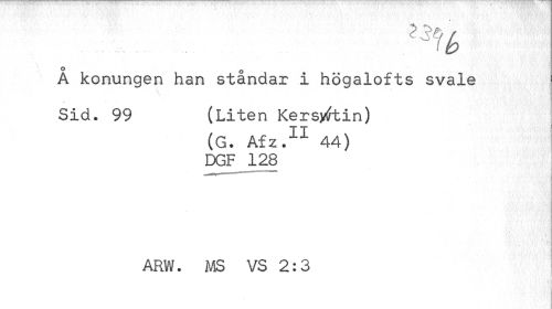 //// Å konungen han ståndar i högalofts svale //// Sid. 99 (Liten Kersyftin) //// (G. Afz.11 44) DGF 128 //// ARW. MS VS 2:3 ////