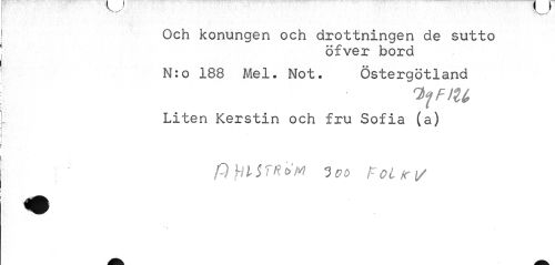 //// Och konungen och drottningen de sutto //// öfver bord //// N:o 188 Mel. Not. Östergötland //// VfF/U //// Liten Kerstin och fru Sofia (a) //// p}rllSTRi>M "ivo Fot/ci/ ////
