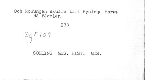 //// > //// I //// Och konungen skulle till Ryninge fara^ //// då fågelen //// i //// 233 //// ftcF i a //// I j //// SODLING MUS. HIST. MUS. i //// J ////