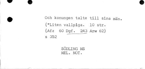 //// g^ Och konunge n talte till sina män. //// ("Liten vallpiga. 10 str. (Afz 60 Dgf. 243 Arw 62) s 352 //// SÖDLING MS MEL. NOT. ////