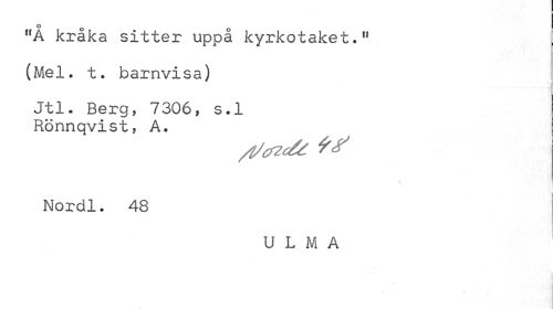 //// ° o o //// "A kraka sitter uppa kyrkotaket." //// (Mel. t. barnvisa) I //// Jtl. Berg, 7306, s.l Rönnqvist, A. //// c //// ' l //// Nordl. 48 //// U L M A //// i ////