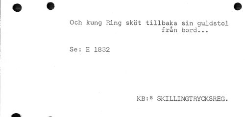 //// Och kung Ring sköt tillbaka sin guldstol //// från bord... //// Se: E 1832 //// KB:s SKILLINGTRYCKSREG. ////