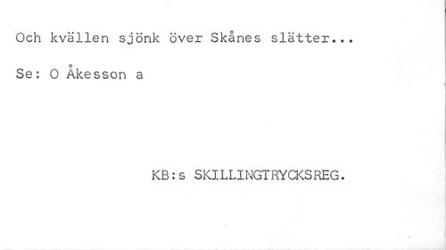 //// Och kvällen sjönk över Skånes slätter... Se: O Åkesson a //// KB:s SKILLINGTRYCKSREG. ////