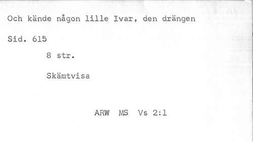 //// Och kände någon lille Ivar, den drängen Sid. 615 //// 8 str. Skämtvisa //// ARW MS Vs 2:1 ////
