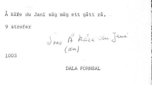 //// I //// O O O || //// A käfe du Jani säg mäg ett gatt ra, . //// 9 strofer j //// (<**¦) i //// 1003 | //// DALA FORNSAL ////