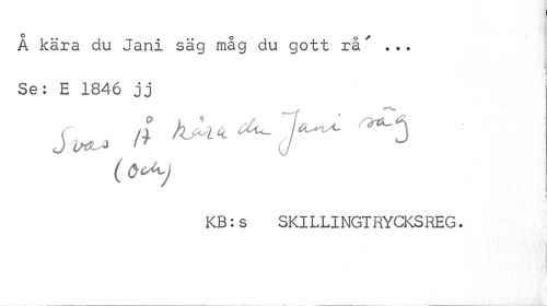 //// f //// i //// o //// A kära du Jani säg måg du gott rå' ... //// i //// Se: E 1846 jj //// KB:s SKILLINGTRYGKSREG. ////