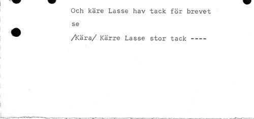 //// Och käre Lasse hav tack för brevet " se //// ^ /Kära/ Kärre Lasse stor tack --- //// / ////