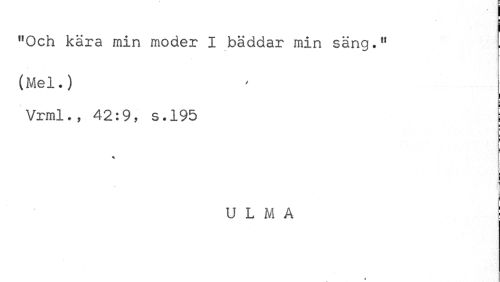 //// "Och kära min moder I bäddar min säng." (Mel.) //// Vrml., 42:9, s.195 ! //// % [ //// : i //// ¦ //// U L M A I //// r ////