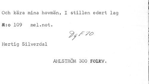 //// Och kära mina hovmän, I stillen edert lag M:o 109 mel.not. //// Hertig Silverdal I //// AHLSTRÖM 300 F61KV. ////