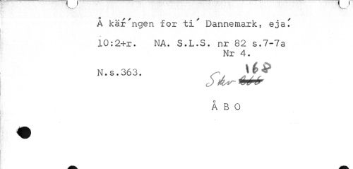//// Å käfngen for ti' Dannemark, eja' //// 10:2+r. NA. S.L.S. nr 82 s.7-7a //// Nr 4. //// N. s. 363. //// c) wr- WWW1 //// ÅBO ////