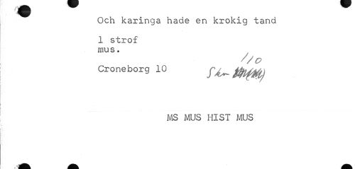 //// « //// Och karinga hade en krokig tand //// 1 strof mus. //// '/o //// Croneborg 10 ^ ffo^ //// MS MUS HlST MUS ////