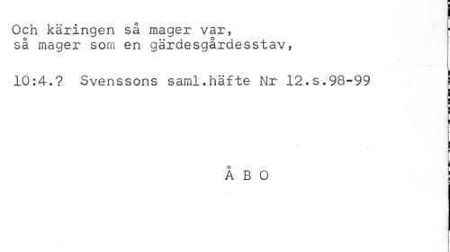 //// Och käringen så mager var, ¦ så mager som en gärdesgårdesstav, //// 10:4.? Svenssons saml.häfte Nr 12.s.98-99 | //// ÅBO | ////