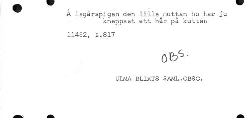 //// A lagarspigan den lilla muttan ho har ju //// knappast ett hår på kuttan //// 11482, s.817 //// ULMA BLIXTS SAML.OBSC. ////