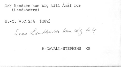 //// Och landsen han sig till Åmål for (Landsherrn) //// H.-C. V:C:2:A (282) //// H-CAVALL-STEPHENS KB //// ---—---—r---*---—---—---——---m--————--«—---——---— - ////