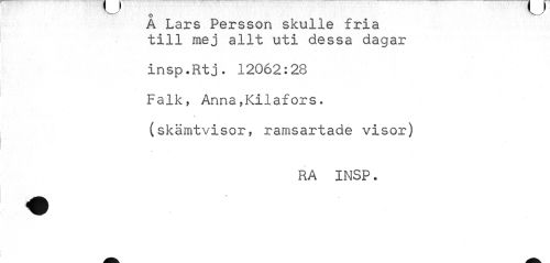 //// A Lars Persson skulle fria till mej allt uti dessa dagar //// insp.Rtj. 12062:28 Falk, Anna,Kilafors. (skämtvisor, ramsartade visor) //// RA INSP. ////